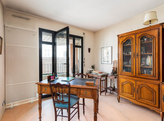 Le bien est situé au 4ème étage avec ascenseur. L’appartement est seul sur le palier. Il bénéficie de grands volumes avec un salon de 37m2. L’appartement est traversant et bénéficie de balcons de chaque côté avec un balcon principal côté salon de 15m2 exposé plein sud. La surface pondérée est estimée à 106,3m2. La distribution actuelle offre 2 chambres et 2 salles de bains. Il y a la possibilité de passer l’appartement en 3 chambres.